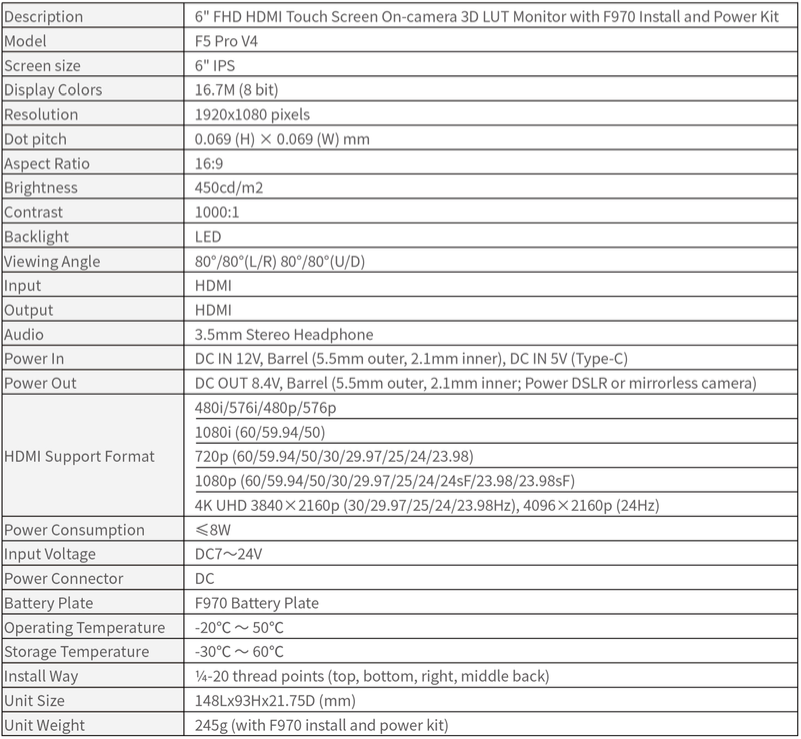 - Support 3D LUT Log to Rec.709, user 3D LUT Upload