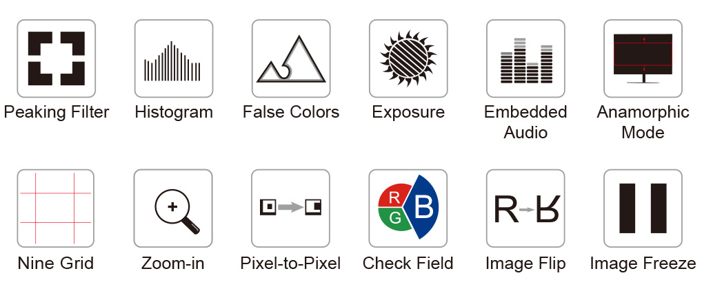 - Peaking Focus Assist (Red,Green,Blue three colors optional highlight over parts of the image in focus)