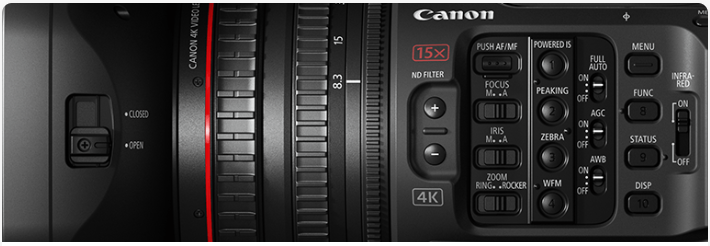 4K 4:2:2 10 bit Recording, 4K Optical 15x L Zoom Lens with Optical IS, Dual Pixel CMOS AF with EOS iTR AF X, Broadcast Ready with IP functions, XLR ports, SDI output, Timecode, Genlock, UVC and 3 lens rings. |