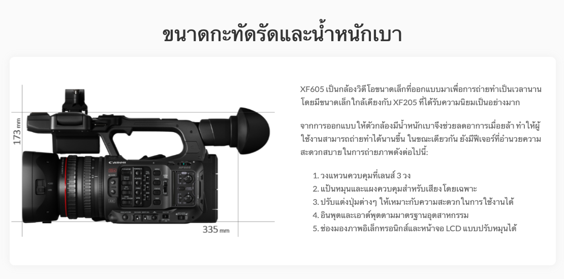 นอกจากประสิทธิภาพด้านออปติคอลอันทรงพลังแล้ว XF605 ยังมีฟังก์ชันต่างๆ เช่น การใช้งานแบบ 3 วงแหวนประสานพลัง (ซูม โฟกัส ม่านแสง) และระบบป้องกันภาพสั่นไหวแบบออปติคอล เพื่อเพิ่มขีดความสามารถในการถ่ายภาพแม้ต้องถือกล้องด้วยมือ