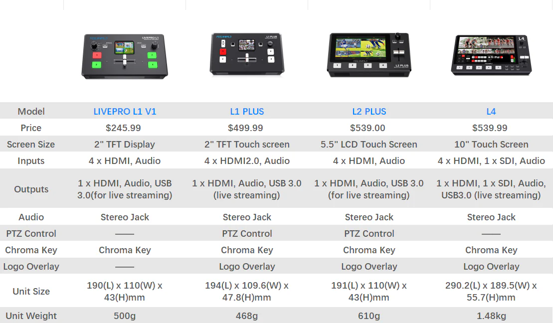 L1 PLUS สามารถควบคุม PTZ และมีหน้าจอสัมผัส ส่วน LIVEPRO L1 V1 ไม่สามารถทำได้