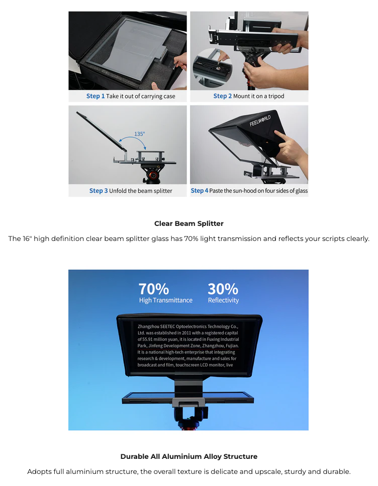 Feelworld TP16 16Inch Folding Teleprompter Supports up to 16" Tablet Horizontal Vertical Prompting