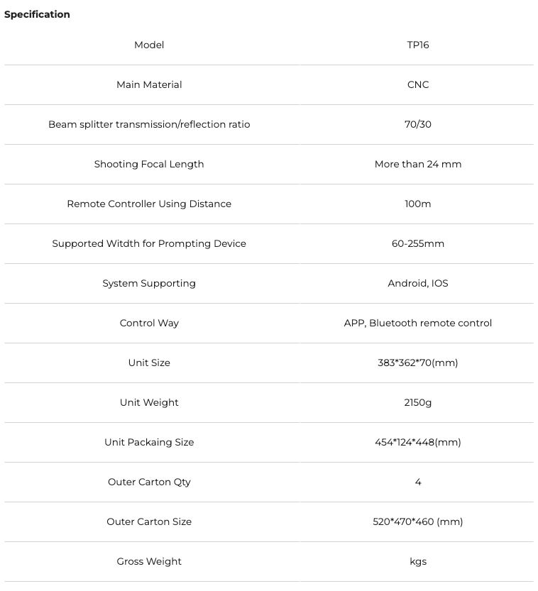 จำหน่าย Feelworld TP16 16Inch Folding Teleprompter Supports up to 16" Tablet Horizontal Vertical Prompting