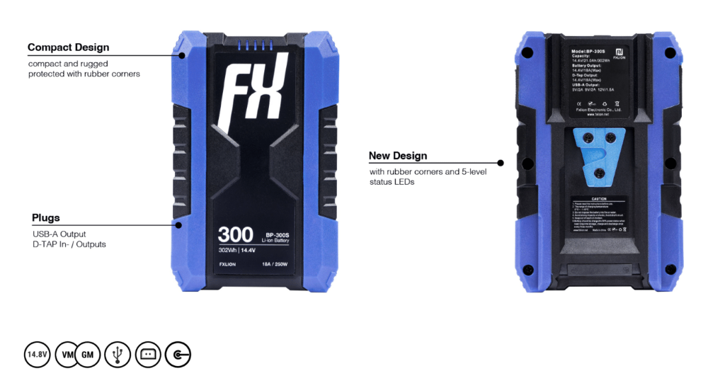 The Cool Black Series features V-Mount / Gold-Mount batteries with a simple 5-level status indicator which shows you the capacity level.