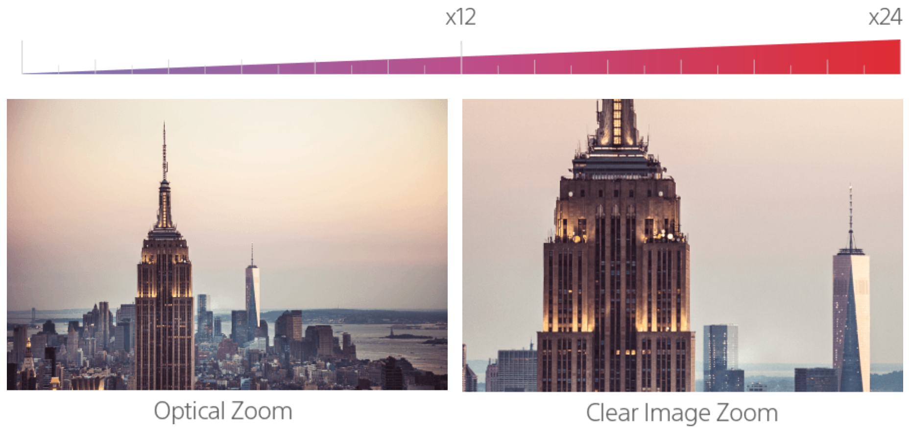 Getting close into even the most distant scenes is further enhanced by Sony’s advanced Clear Image Zoom feature. Once you’ve zoomed in at maximum 12x optical magnification, By Pixel Super Resolution Technology can enlarge the image to 18x in 4K QFHD or 24x in HD, while still preserving image quality.