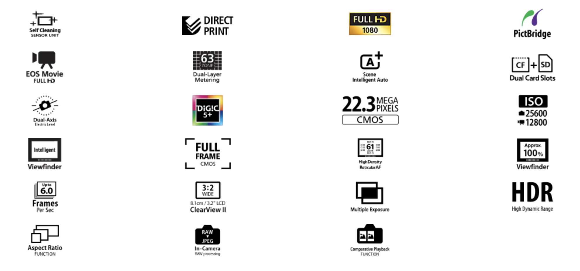 Canon is proud to present the highly anticipated EOS 5D Mark III. With supercharged EOS performance and stunning full frame, high-resolution image capture, the EOS 5D Mark III is designed to perform. Special optical technologies like the 61-Point High Density Reticular AF and an extended ISO range of 100–25600 expandable to 50 (L), 51200 (H1) and 102400 (H2) make the EOS 5D Mark III ideal for shooting weddings in the studio or out in the field, and great for still photography. Advanced professional-level high definition video capabilities (that includes a host of industry-standard recording protocols and enhanced performance) make it possible to capture beautiful cinematic movies in EOS HD quality. A newly designed 22.3 Megapixel full-frame Canon CMOS sensor, Canon DIGIC 5+ Image Processor, and shooting performance up to 6.0 fps provide exceptional clarity and sharpness, even when capturing rapidly-unfolding scenes. Additional technological advancements include an Intelligent Viewfinder, Canon's advanced iFCL metering system, High Dynamic Range (HDR), and Multiple Exposure mode-all of which help make the EOS 5D Mark III the perfect multimedia tool.