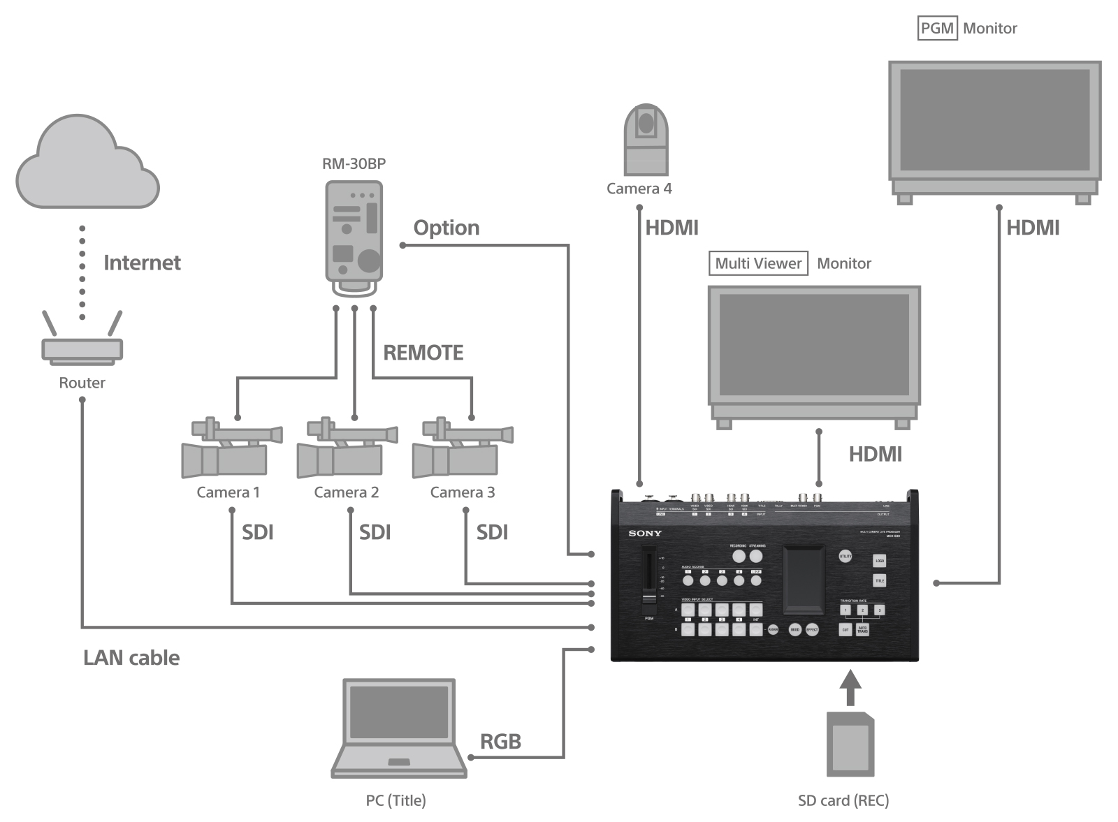 HDMI | HDMI (Type A) (x1, PGM) (720x480/576p, 1280x720p, 1920x1080i/p) HDMI (Type A) (x1, Multi View) (720x480/576p, 1280x720p, 1920x1080i/p) |