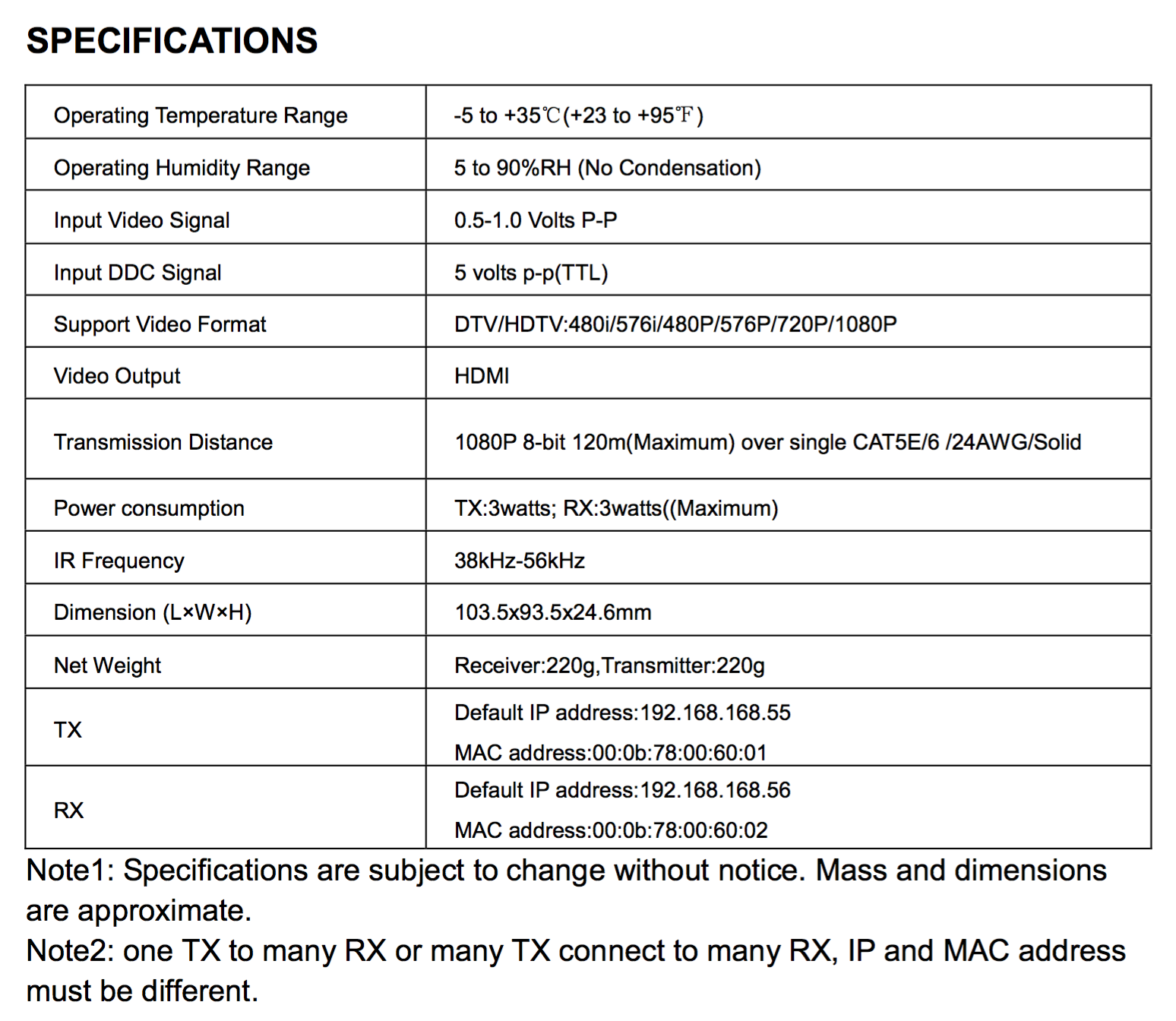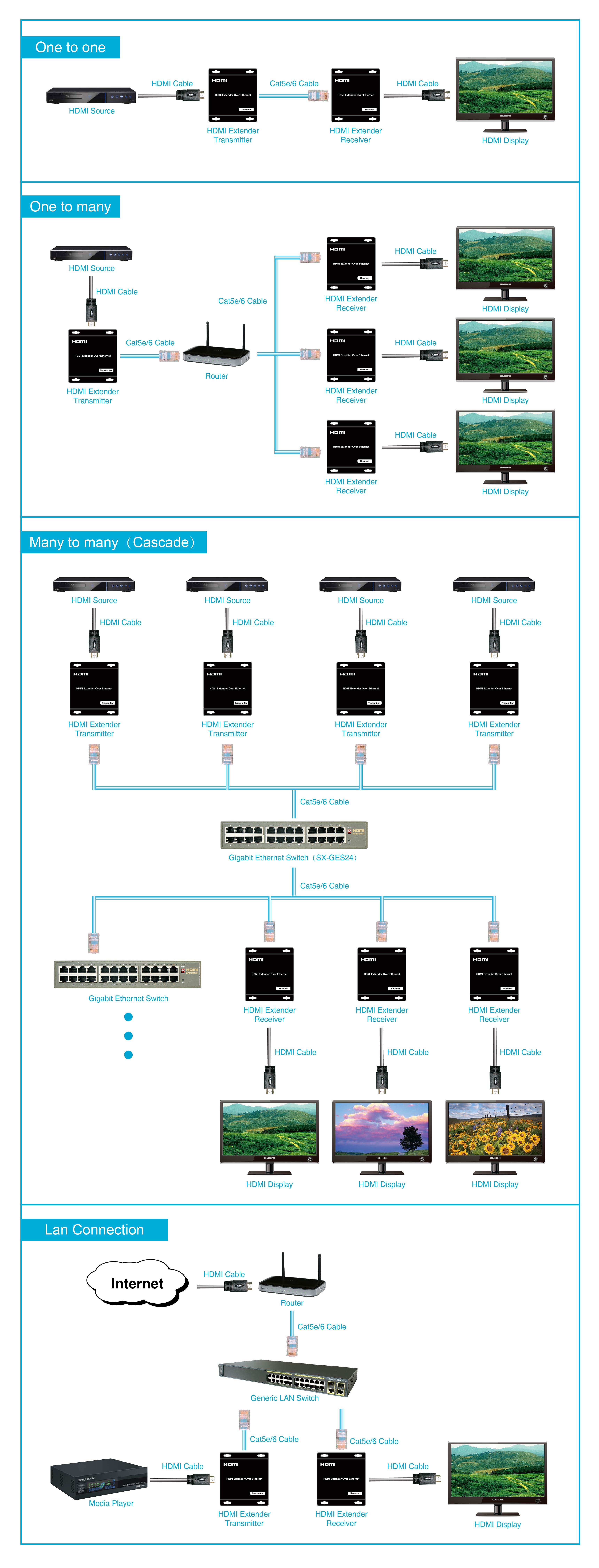 5).Extends 1080p HDMI signals up to 120m over a single Cat5e/6 cable
