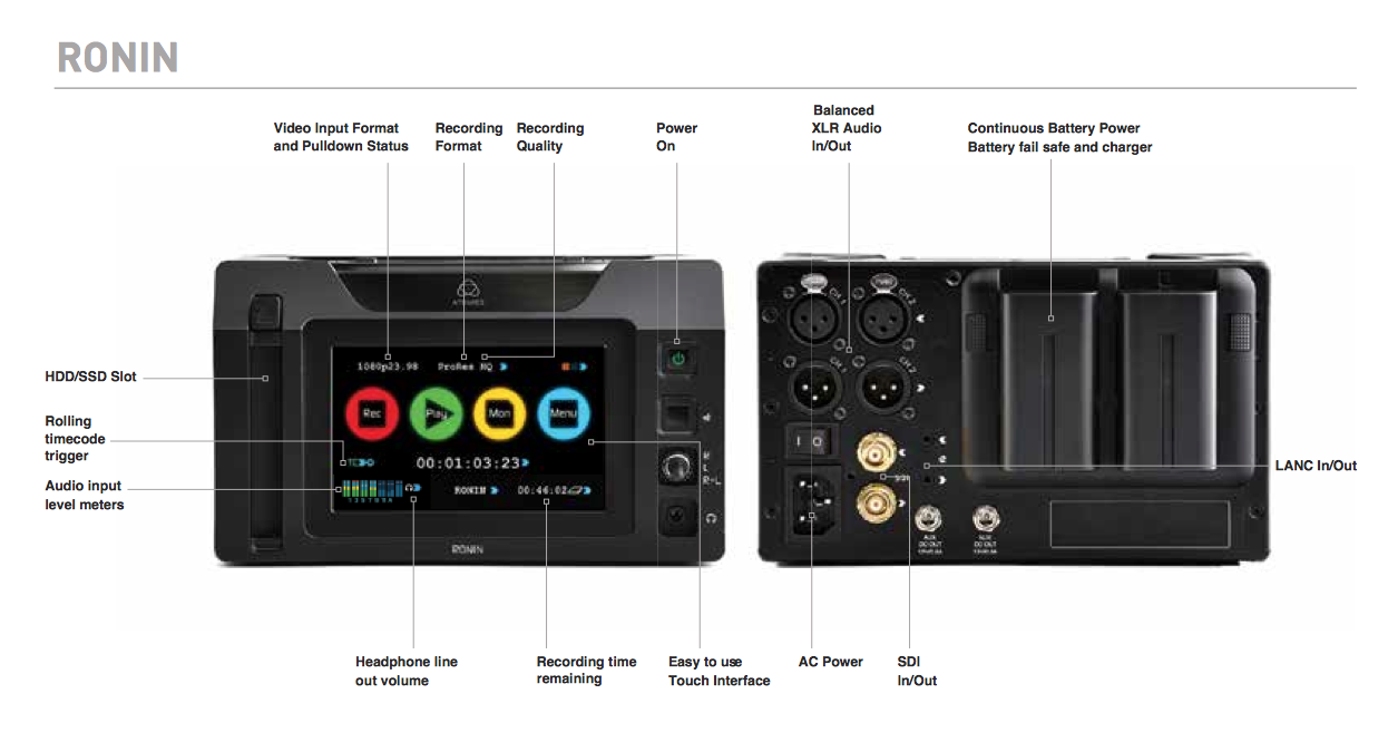 ATOMOS RONIN The ultimate all-in-one HD/SD-SDI recorder-monitor for Studios, Broadcast and ProAV.