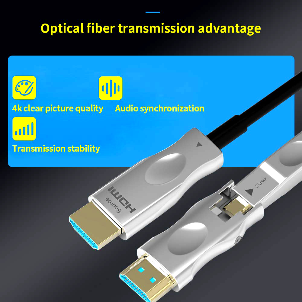 Four-core optical fiber transmits TMDS signals and no attenuation,Support long transmission distance,the longest over 100 meters.