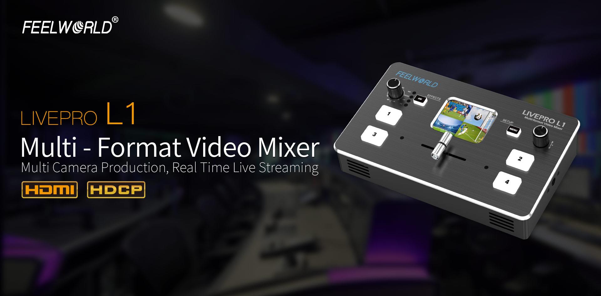 The LIVEPRO L1 is a mini switcher, that is small enough to fit into equipment cases and camera bags. Designed to integrate with typical video production workflows , the LIVEPRO L1 has a screw tap for standard video mounts and conveniently attached onto a tripod to stay out of the way. It is light weight design makes it ideal for mobile video applications too.